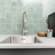In deze vakantiewoning zijn keuken, trap, trapkast en balustrade in dezelfde zachte groentint uitgevoerd. Zo ontstaat een licht, fris en modern geheel waarin de beperkte ruimte optimaal benut wordt.