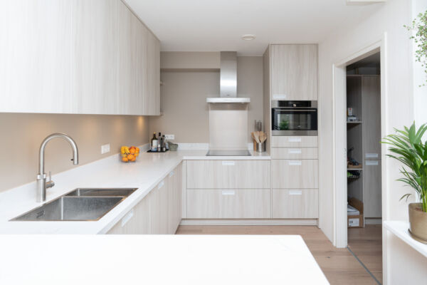Een lichte, rustige keuken die perfect aansluit bij de woning en waarin maatwerk zorgt voor rust, eenheid en praktisch gemak.